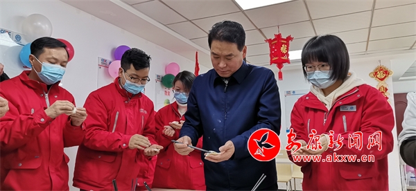隨后,趙俊民來(lái)到項(xiàng)目部職工食堂,與大家一起包餃子吃團(tuán)年飯,其樂(lè)融融迎新年。