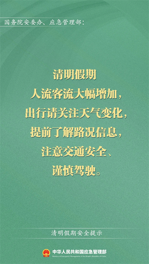 應急管理部清明假期安全提示