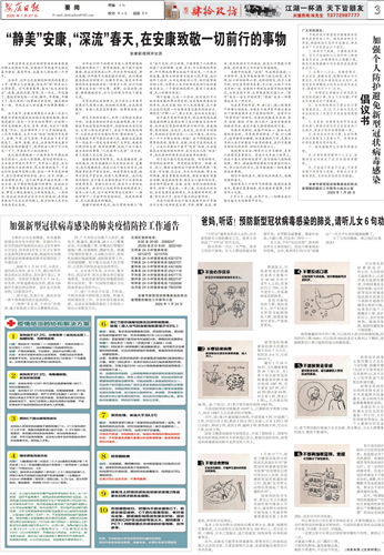 積極搭建民生服務平臺,幫助群眾解決實際困難。2020年,本報堅持正面宣傳,開設“眾志成城抗擊疫情”欄目,深入宣傳、充分報道黨中央重大決策部署、聯防聯控措施、防控疫情的成效,使全市群眾在堅定信心的同時,興起了群防群控熱潮。充分發揮服務群眾、引導群眾功能,先后開設“2020春我的宅家筆記”等欄目刊發稿件30多篇,引導市民不盲目跟風不過度防護,有效及時疏導公眾焦慮恐慌等情緒,凸顯了主流媒體的傳播力影響力和公信力。