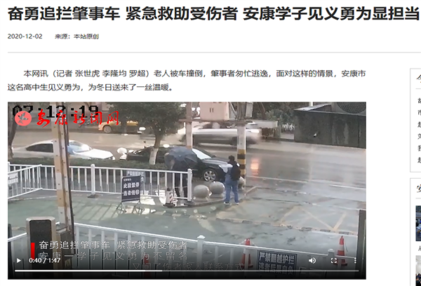 “石夢林”轟動全網,傳播安康好形象。2020年12月,網站記者原創采寫石夢林見義勇為視頻報道,并在微信、網站、微博首發,消息一經發布,引發了中省市各級媒體的廣泛關注,人民日報、新華網、央視新聞、中央廣播電視總臺中國之聲等中央級媒體集中轉載報道,全網刷屏,最終“引爆”互聯網。據不完全統計,此次報道閱讀量過億次,安康新聞網首個“全網刷屏”的原創報道,創造了網站歷史,安康地域品牌也隨著全網“飄紅”。安康乃至陜西的新民風,以及青少年德育工作,和安康的形象得到全網肯定。