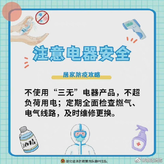 疫情尚未結束,防控仍在進行,居家防疫依舊不能馬虎!!留意家中的消防隱患,掌握正確的消殺方式,請查收這份防疫防火安全攻略吧 。