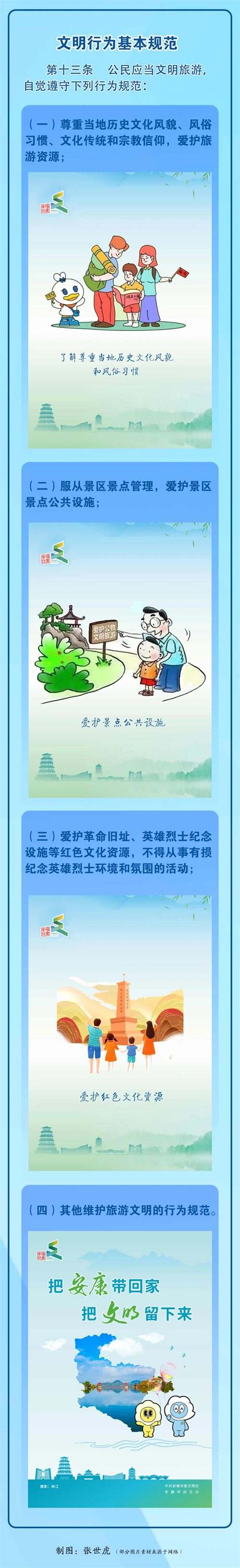 當你計劃看山看水看風景的同時hjA安康新聞網 別忘了在行囊里hjA安康新聞網 帶上一份文明攻略hjA安康新聞網 只有一路文明相伴hjA安康新聞網 路上風景才會更加美好hjA安康新聞網 那么如何做到文明旅游呢?hjA安康新聞網 讓我們一起來學習hjA安康新聞網 《安康市文明行為促進條例》hjA安康新聞網 的相關規定吧!hjA安康新聞網