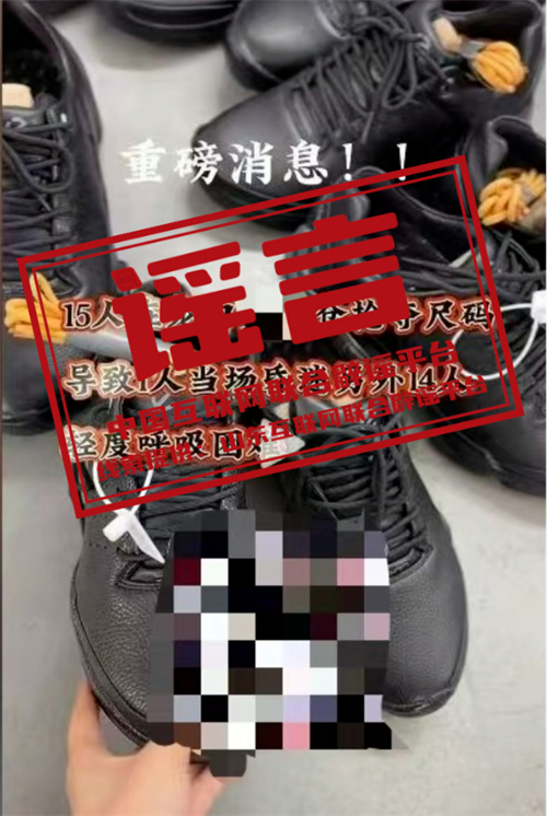 真相:近日,有網民在某平臺上發布視頻稱:“重磅消息!15人在龍口某倉庫搶奪尺碼,導致1人當場昏迷,另外14人輕度呼吸困難,天降之禍”,引發社會關注。山東龍口網信部門巡查發現該情況后立即聯合當地公安部門啟動調查程序。調查發現,此視頻發布者系當地品牌運動折扣店店主劉某。圖中“搶奪尺碼”是指斷碼甩賣的鞋子,有時商家為吸引顧客會搞類似的優惠活動。而劉某為博取流量,吸引關注,自行編造并發布了上述謠言。目前,龍口公安已依法對劉某進行行政處罰。(來源:山東互聯網聯合辟謠平臺)