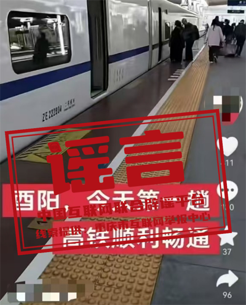 真相:近日,某網民在互聯網平臺發布信息稱“酉陽,今天第一趟高鐵順利暢通”,引發關注。經核實,網傳信息系謠言,酉陽縣暫未建成高鐵站。根據建設計劃,黔吉高鐵重慶段將于年內開工建設,線路貫穿黔江區、酉陽縣、秀山縣三地,線路全長約224.2km,全線設置車站3座,整個建設工期大概5年左右,預計在2030年之前全面建成通車。目前,警方已對造謠者展開調查。(來源:“重慶辟謠”微信公眾號)