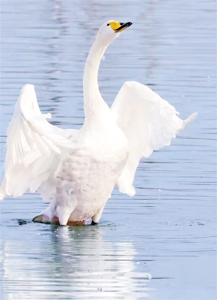 成鳥遍體雪白,僅頭頂至枕略沾淡棕黃色。雌雄同色,雌性體型略小。虹膜棕色,嘴黑灰色,上嘴基部?jī)蓚?cè)黃斑向前伸近鼻孔,蹼、爪等均為黑色。幼鳥全身淡灰褐色,嘴基粉紅色,嘴端黑色。小天鵝并非幼年的天鵝,其體型比大天鵝小,脖子更短,嘴上的黃色區(qū)域較少。(來源:安康市林學(xué)會(huì))3Kr安康新聞網(wǎng)