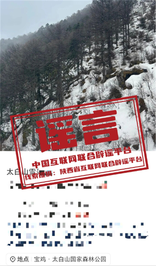 真相:近日,有網(wǎng)民發(fā)帖稱“陜西太白山迎來今秋第一場大雪”,并曬出視頻畫面,山林間白雪紛飛,屋檐上覆蓋著薄雪。相關(guān)視頻引發(fā)關(guān)注,有網(wǎng)民表示立即前往景區(qū)賞雪。對此,景區(qū)工作人員回應(yīng)稱,網(wǎng)傳視頻為往年下雪場景,目前太白山正在下大雨,景區(qū)已經(jīng)關(guān)閉。提醒游客出行前應(yīng)關(guān)注景區(qū)的實(shí)時(shí)公告與天氣情況,以免受虛假信息誤導(dǎo)。(來源:陜西省互聯(lián)網(wǎng)聯(lián)合辟謠平臺(tái)、@上游新聞)