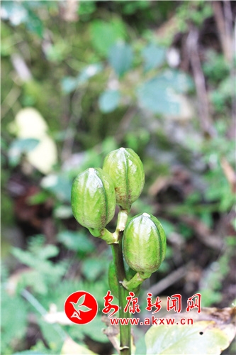 大百合生長在溪邊的山坡上,筆直的莖稈約一人高,如箭沖天,下部散有幾片寬大的綠葉,上端擎著若干喇叭狀的花兒,潔白中透著紫紅,驚艷得如同一位亭亭玉立卻羞紅了臉的美人。(圖/文 榮海) AWg安康新聞網