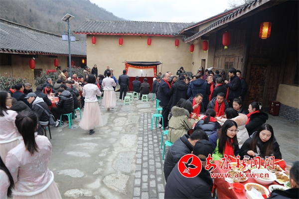 ▲ 1月18日,漢濱區(qū)譚壩鎮(zhèn)開展購(gòu)年貨、吃皰湯、喝臘八粥、送春聯(lián)活動(dòng),現(xiàn)場(chǎng)熱鬧非凡。吳亞君 攝