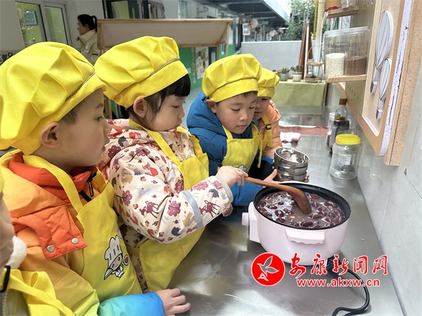 ▲ 石泉縣第二幼兒園開展“童心知民俗 開心過臘八”主題活動(dòng),孩子們慢慢熬制香甜可口的臘八粥,將傳統(tǒng)文化與勞動(dòng)教育相融合。陳遠(yuǎn)熙 攝