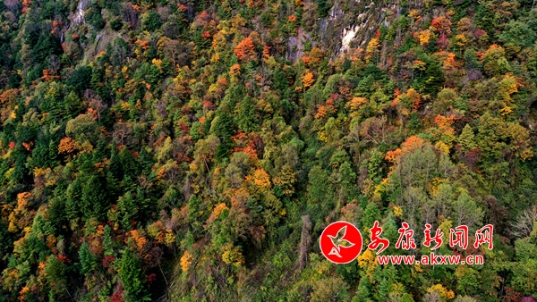 金秋十月,清風送爽。寧陜縣境內的平河梁自然保護區層林盡染,讓人不禁感謝大自然的饋禮,陶醉于這美景之中,一眼望去滿眼色彩斑斕,秋日山色美不勝收。(楊寧 攝)