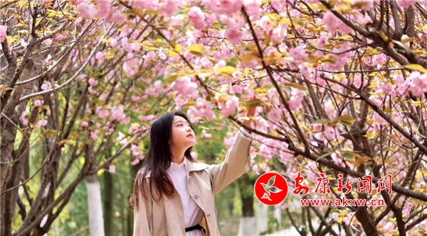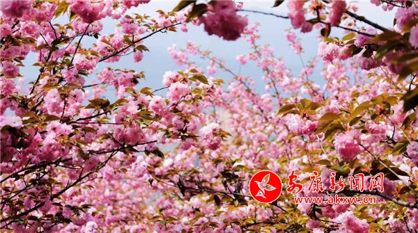 近日,在漢陰縣龍崗公園,成片的櫻花競相開放,形成一片紅粉為主、白色點綴的爛漫花海,美不勝收,給春天增添了一抹浪漫色彩。