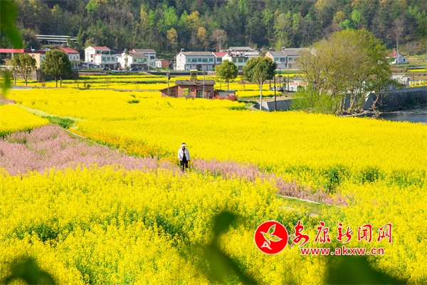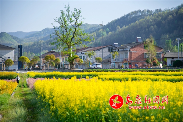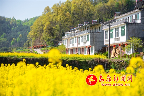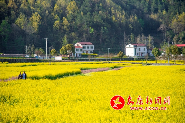 近日,石泉縣中池鎮境內的油菜花競相開放,金黃的油菜花田與村落民居交相輝映,一幅田園風景畫惹人陶醉。儲招賢 攝