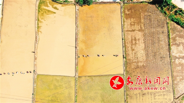 ② 平利縣西河鎮(zhèn)緊抓全國穩(wěn)糧擴(kuò)豆增油的政策機(jī)遇,依托旱改水工程契機(jī),改出稻田好“豐”景。梅興宇 攝