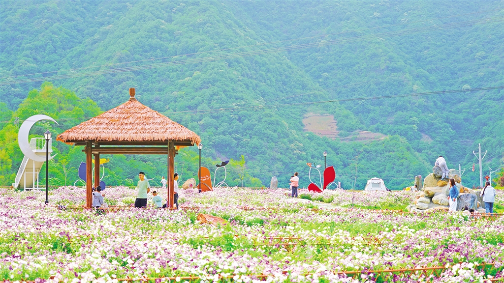 5月的白河,青山如黛,綠意蓬勃。乘車沿著縣城二級路走進位于構朳鎮涼水村的百福園花園,眼前驟然鋪開一幅色彩斑斕的畫卷。牽牛花如彩色小喇叭般昂首,小雛菊似亭亭玉立舞者般輕盈,格;ㄈ缪┯蛳勺影愀蓛羲匮牛悍紶幤G間,將鄉村田園的質樸與浪漫詮釋淋漓盡致。草坪野餐、放風箏,露天營地等娛樂項目吸引了眾多游客紛至沓來。 (通訊員 周驍)sYR安康新聞網