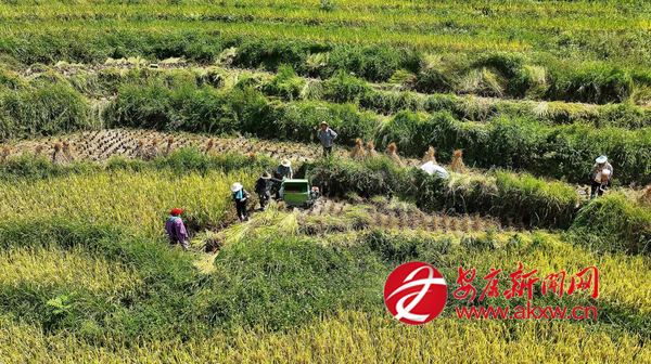 金秋時節(jié),漢陰縣鳳堰梯田景區(qū)迎來了一年中最動人的季節(jié)。層層疊疊的梯田上,稻穗低垂、金黃遍野,農(nóng)戶們穿梭其間,描繪出一幅忙碌而喜悅的豐收畫卷。(通訊員 文婷)wrF安康新聞網(wǎng)