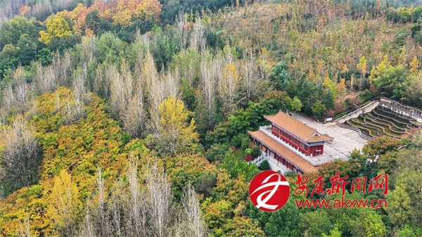 初冬時節,漢陰的龍崗公園內外層林盡染,與人文景觀交相輝映,構成一幅流動的山水畫卷。公園地勢連綿,園內步道蜿蜒,亭臺錯落。從空中望去,茂密的林木披上了紅、黃、橙交織的花衣裳,與常綠樹種相互點綴,猶如大地的調色盤。山頂的龍崗閣巍然屹立,在金黃烏柏與如火楓葉的簇擁中,成為整個公園的視覺焦點。登閣遠望,漢陰縣城全貌盡收眼底,月河如帶穿城而過,與秋日晴空共同勾勒出“水天一色”的壯美圖景。(通訊員 文婷 徐歡) 7Mq安康新聞網