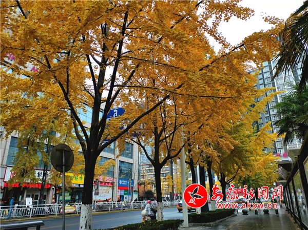 冬日暖陽,城區環城南路銀杏樹披上金色的盛裝。(陳榮斌 攝 )