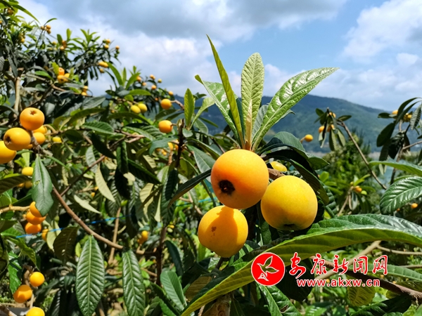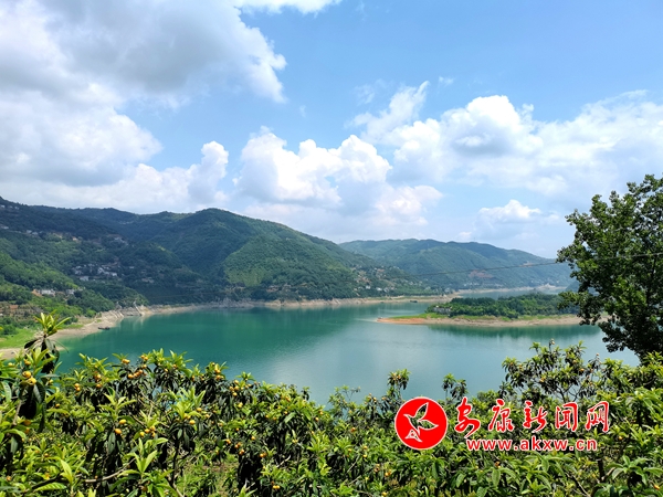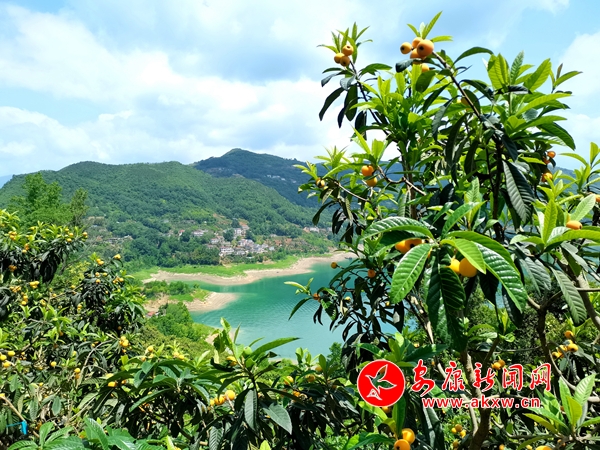 五月的瀛湖碧水藍天,綠意盎然,漫山遍野的金色枇杷掛滿枝頭,碩果累累,一派豐收的景象。瀛湖枇杷以汁多味美 、酸甜可口著稱,贏得市民和外地客商的青睞。(陳榮斌 攝)