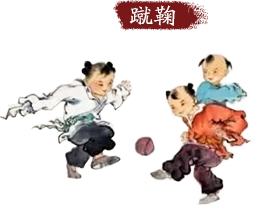 蹴鞠,又名“蹋鞠”、“蹴球”、“蹴圓”、“筑球”、“踢圓”等,“蹴”有用腳蹴、蹋、踢的含義,“鞠”最早系外包皮革、內實米糠的球。因而“蹴鞠”就是指古人以腳蹴、蹋、踢皮球的活動,類似今日的足球。據史料記載,早在戰國時期中國民間就流行娛樂性的蹴鞠游戲,而從漢代開始又成為兵家練兵之法,宋代又出現了蹴鞠組織與蹴鞠藝人,清代開始流行冰上蹙鞠。因此,可以說蹴鞠是中國古代流傳久遠、影響較大的一朵體育奇葩。