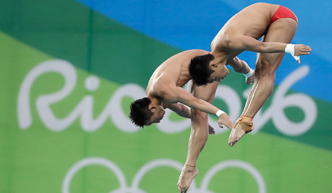 當地時間8月8日,在里約奧運會男子雙人十米臺決賽中,中國組合林躍/陳艾森一路領先,以巨大優勢奪冠,中國隊也實現該項目四連冠。中新網記者 杜洋 攝……