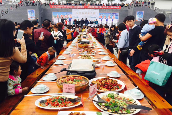游古鎮(zhèn)、觀花海、品魚宴,在油菜花盛開的古鎮(zhèn)初春感受陜南特色文化是周末度假的不錯選擇。此次旅游文化節(jié)還原了古鎮(zhèn)延續(xù)百年的長桌宴春季祈福儀式,成為眾多吸睛活動中的特色。春福長桌宴是流水古鎮(zhèn)居民延續(xù)百年的古老祈福儀式,每逢春季到來,鎮(zhèn)上居民挨家挨戶將長桌擺成一排,端上自家最好的菜肴,共同品嘗美食,祈福來年平安和豐收。旅游文化節(jié)此次將邀請游客與古鎮(zhèn)居民一起圍爐品長桌宴,也將給游客帶來非凡的旅游記憶。同時,以烹飪瀛湖魚為主題的魚宴擂臺賽也在此次旅游文化節(jié)亮相,數(shù)名陜南知名廚師同場競技,讓游客品嘗魚、感受魚文化,同時推出瀛湖魚宴行業(yè)標(biāo)準,給游客打造更健康安全的旅行體驗。來自西安的楊女士告訴記者,流水古色古香,魚宴也是美輪美奐,感覺到這里,是視覺和味覺上的極致體驗。