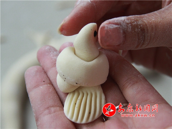 花饃技藝傳承人胡志霞告訴記者:“剛開始就是覺得這個(gè)制作過程很有趣,一雙手能做出那么多造型,驚訝之余就特別想去學(xué)習(xí)這個(gè)手藝,那時(shí)候做花饃都是由家中長輩制作,自己在一旁看著不能輕易上手,所以我經(jīng)常都是用地里的泥巴來練習(xí)做花饃,不知不覺還真讓我學(xué)會(huì)了不少花饃的樣式。但是現(xiàn)在大家都一門心思想著掙錢,年輕一代的更是耐不下性子來學(xué)習(xí)制作花饃,而蒸花饃又是個(gè)費(fèi)神勞力的力氣活,和面、醒面、揉面,既講究干濕均勻,又要注意力道,還要求制作者必須具備精熟的技藝,否則這普通的面團(tuán)很難做成各種栩栩如生的小動(dòng)物或花兒形狀的花饃。”