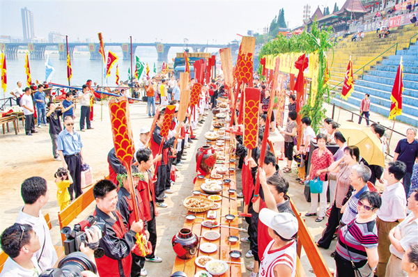 李煥龍“漢江排子席”是形成于安康,輻射于漢水流域的民間宴席。它起源于船家行水,在沿江碼頭城鎮(zhèn)?繒r,于河灘地撤排子搭長桌,用于拜碼頭、酬商戶及犒勞船工……