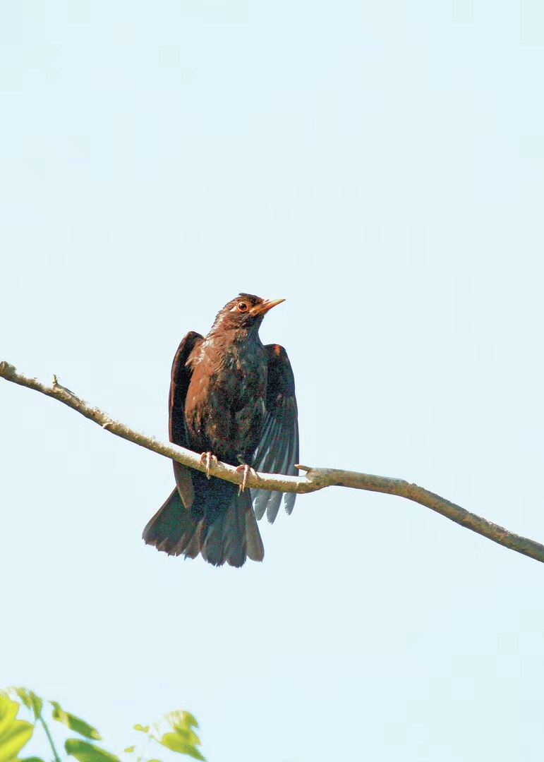 烏鶇要安靜地多,它們常三四只一起生活,不吵鬧,只有沒有人的時候,才從樹上下到地面上來覓食。黃嘴巴,渾身黑。只要它一看見你,便很快飛到樹枝間隱藏起來。