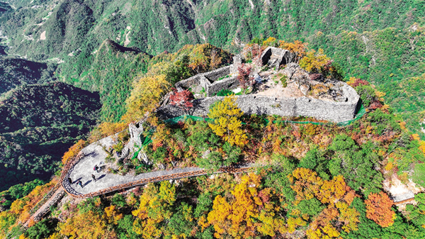 全勝寨位于我市嵐皋縣民主鎮,是一個隱于群山、建于絕壁之上、保存完整的古山寨群落。古寨遺存的多處石砌城墻和戰壕錯落有致,延綿數公里,為秦巴山區所罕見。據當地史志記載,此寨始建于明末,是當地民眾為躲避戰亂而建。因山寨抵御多次外來侵擾,屢獲全勝,故名“全勝寨”。這里平均海拔1300至1500米,是陜西省第七批文物保護單位,也是目前我省保存較為完好、歷史戰績輝煌的寨堡,同時也是重要的革命歷史舊址。對于研究明、清、民國時期嵐皋歷史文化和寨堡建筑具有重要價值。(袁法 攝)