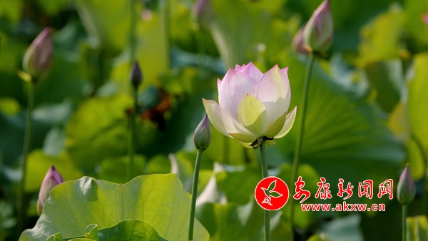 走進(jìn)荷塘,連片的荷葉已經(jīng)舒展開來,朵朵荷花挺立其中,有的已經(jīng)綻開美麗的外衣,爭奇斗艷;有的正孕育著花骨朵,靜靜等待花開。荷塘里花香四溢,粉白、淡紅的荷花在微風(fēng)的輕撫下,搖曳著曼妙的身姿。優(yōu)美的景色吸引了許多游客走進(jìn)荷塘打卡拍照,盡享夏日好時光。