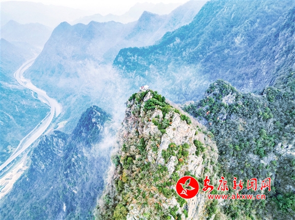 蠟燭山從嵐河岸邊拔地而起,綠水相依、雙峰景秀,傲然獨立、別有特色,峭壁懸?guī)r、小道通幽,真乃仙境之地。