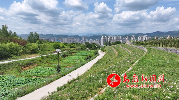 四周是青山,但山腳的地勢卻十分平坦,泥土蓬松柔軟,一套長長的小河,從這頭流向那頭。河水澄澈明凈,可以看見水里的沙石。一群潔白的鴨子在水中歡快地游著,時而抖抖身上蓬松的羽毛和天鵝嬉戲。天鵝紅嘴,白身子,在陽光的照耀下,白中透著點紅色,著實漂亮,群群銀白色的小魚圍著河中的水草戲耍。一只鷺鷥扇動著白色的翅膀,長長的尖嘴,細長的腿在天空劃過美麗的倩影,嘴里那條銀白的小魚仍閃著亮光。河道分支一條筆直的水渠,灌溉著一畦畦的農田。河堤岸是寬闊的鄉村機耕路。鄉村公路穿梭著來來往往汽車和人群。河兩邊依依的楊柳,為它們擋住了正午強烈的陽光,形成了一道天然的綠蔭。站在馬路上,涼風習習,香氣陣陣,讓人感到十分舒適。