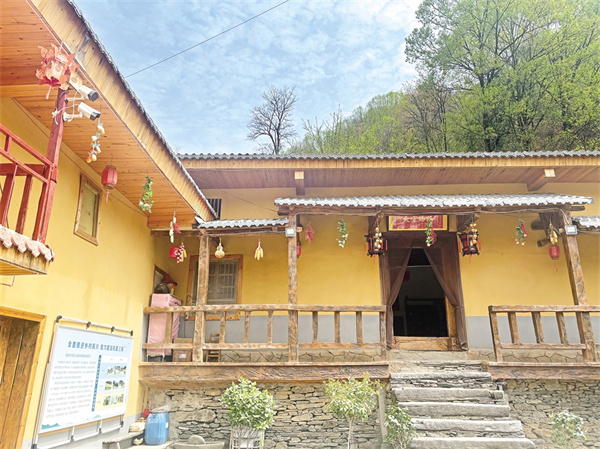 藍(lán)天、白云、清風(fēng)、朗日、松林……一切慵懶舒適得剛剛好。一路盤(pán)繞,繞道幾彎桃紅柳綠、野花盛開(kāi)的山道,掠過(guò)桃紅李白郁郁蔥蔥的樹(shù)林,周家院子便毫無(wú)征兆地映入眼簾。隔墻遠(yuǎn)瞧,院內(nèi)房屋呈L形鋪展開(kāi)來(lái),房梁上懸掛的金黃色玉米穗、燦若紅霞的辣椒展示著農(nóng)家物產(chǎn)豐饒的鄉(xiāng)野特色,犁彎、犁脖、犁鏵,述說(shuō)著院子主人的勤勞與殷實(shí)。而一串串醒目的大紅燈籠,展示著主人的幸福生活和對(duì)未來(lái)的美好憧憬。