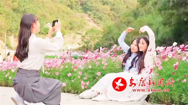 相映成趣游人如織金秋時(shí)節(jié),在白河縣構(gòu)朳鎮(zhèn)廟山寨花海產(chǎn)業(yè)園,盛開的格桑花在風(fēng)中搖曳。游客漫步在路上,心緒隨著搖曳的格桑花一同起伏,沉浸在秋日的寧靜與美好……